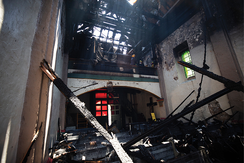 As bad as the damage is, it could have been worse. Because the church had been undergoing renovations, much of the artwork in the sanctuary, including historic paintings and other devotional artifacts, had been removed prior to the fire.