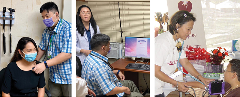 A joint initiative between the Bayanihan Clinic Without Walls and Hawaii Filipino Healthcare offers free healthcare to Hawaii residents who have lost their jobs due to COVID-19. At far right, a volunteer with Ohana Medical Missions checks a child’s blood pressure on a healthcare trip to the Philippines. Children of the recently unemployed are also eligible for free healthcare through this new initiative. (Photo courtesy Philippine Medical Association of Hawaii)