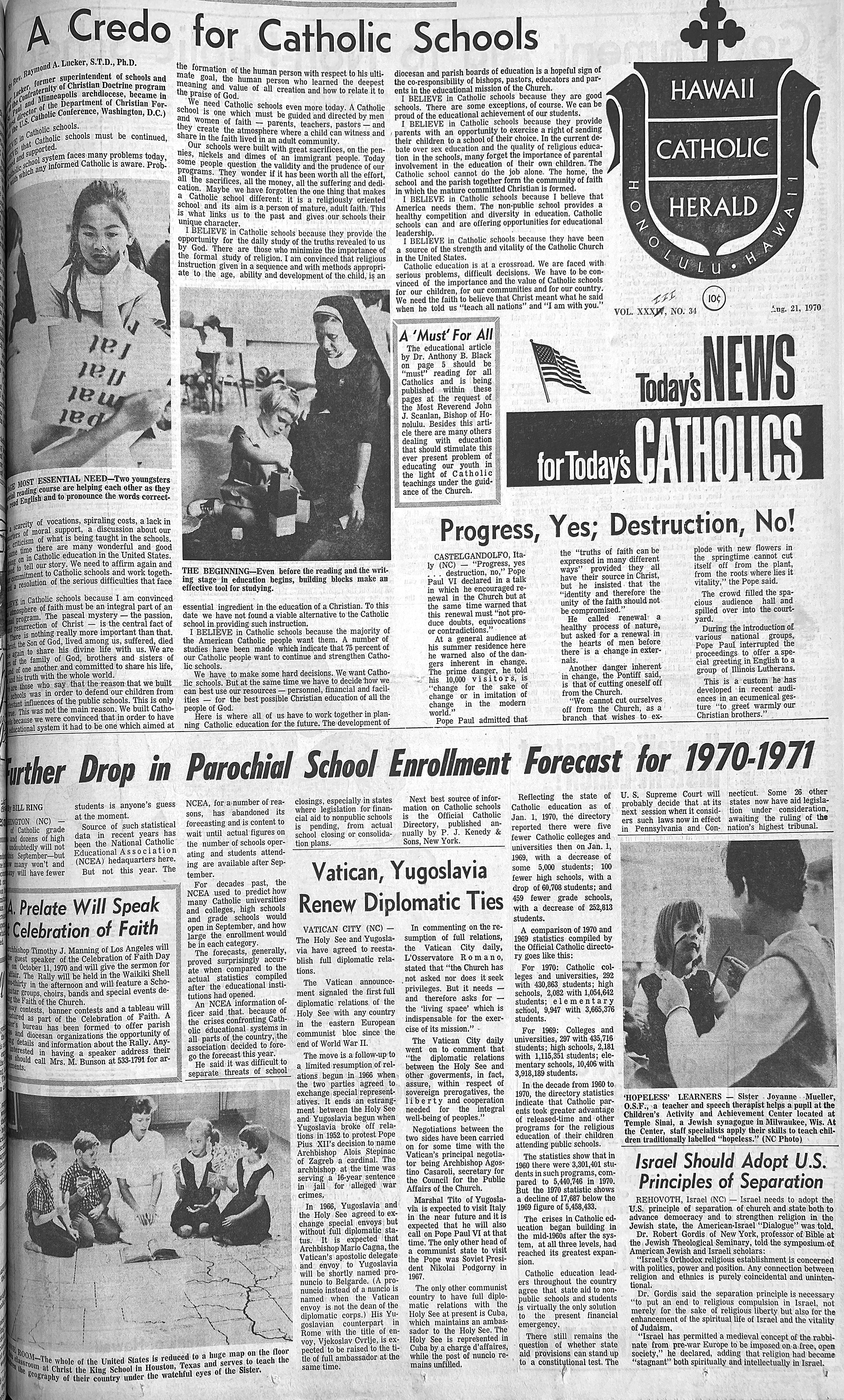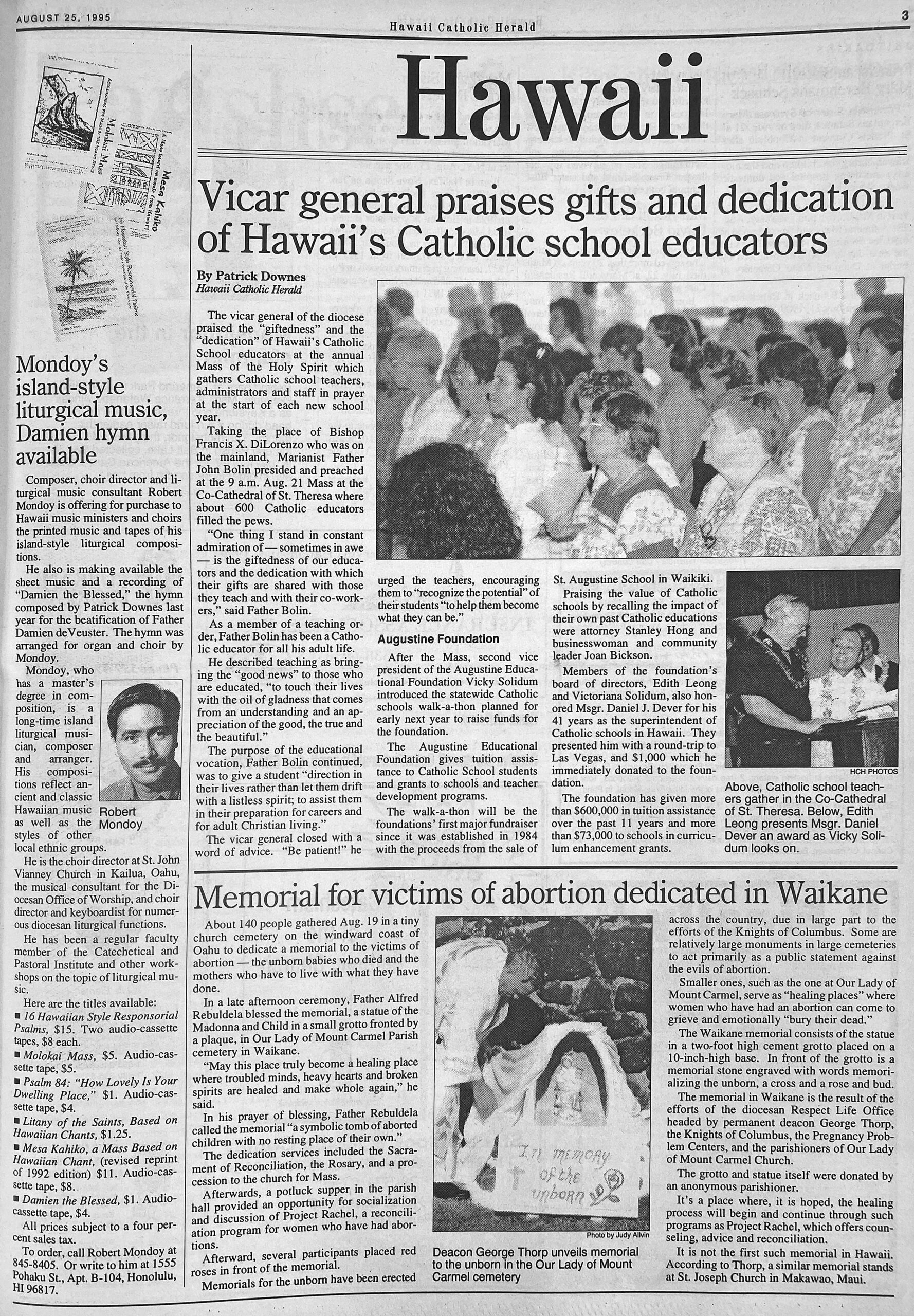 PS: Hawaii Catholic Herald reader John Kong Kee called to say that in the last Heralding Back, the maiden name of the mother of Roland Tam Sing, the first local man to be ordained a Marianist, was misspelled. The correct spelling is Anita Ahloy. (It was misspelled in the original story 50 years ago.) John’s wife is Roland’s cousin.