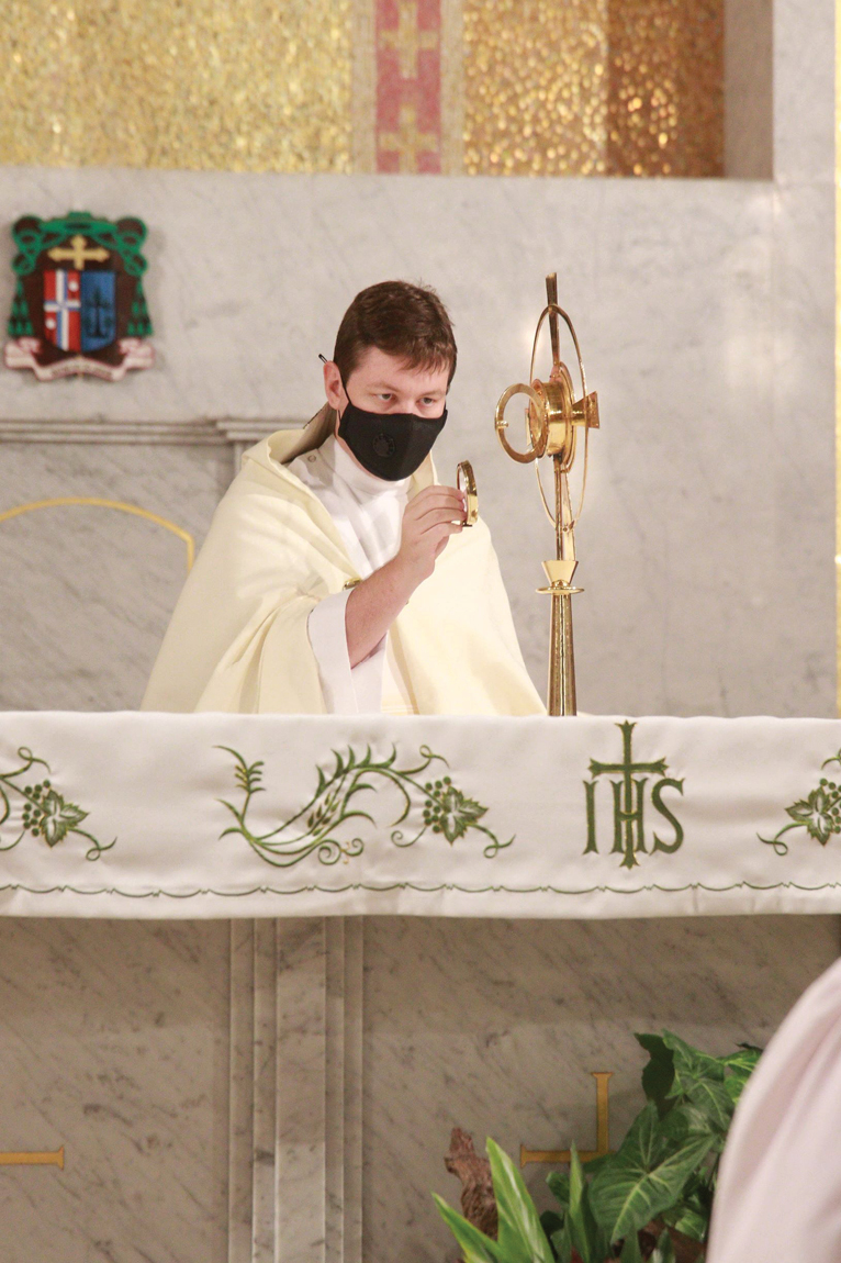 Photo: O Salutaris Hostia 08/19/2020 by Hawaii Catholic Herald Deacon Dario Rinaldi places the host into the monstrance during a holy hour for vocations Aug. 6 at the Co-Cathedral of St. Theresa. (Photo courtesy of Dann Ebina)