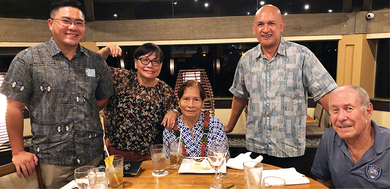 Ann Judilla, clinical researcher at a global pharmaceutical company, second from left, with mother, Stella, and St. Jude Parish priests.