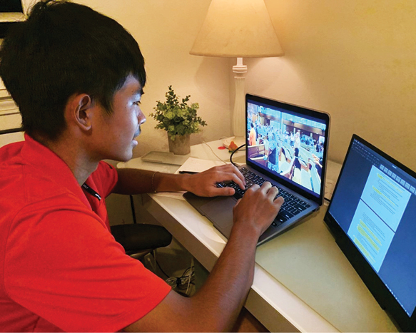 Anson Cabello works on the parish instructional video. (Photo courtesy of St. Anthony Parish, Wailuku)