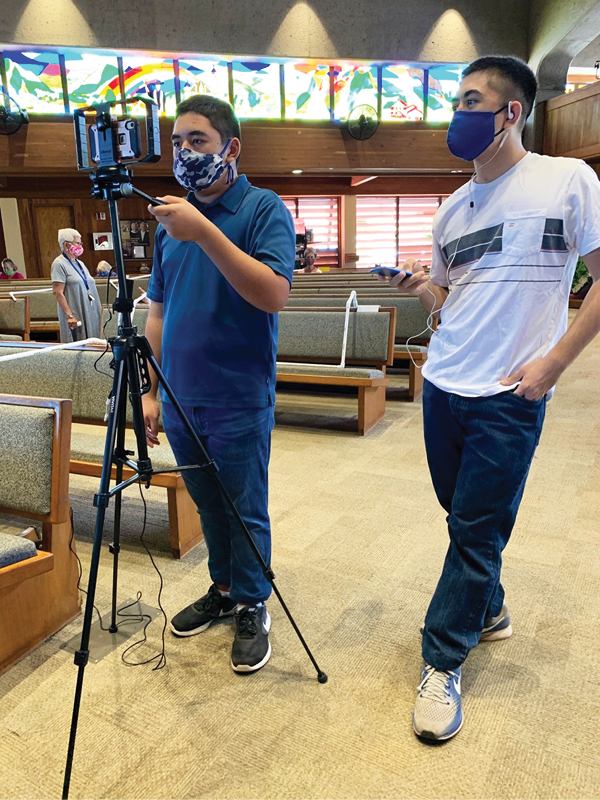 Videos were needed to be played before Masses to inform parishioners of the new procedures. To create the videos, the parish recruited two of its acolytes, Jasyah Macugay, a junior at Kamehameha Maui, and Anson Cabello, a sophomore at Kamehameha Maui. Both volunteered their videography skills to support the parish’s new initiatives.