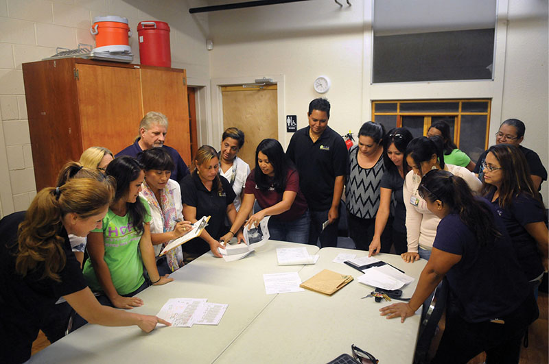 Brandee Menino huddles with her staff, during preparations for Hurricane Iselle in 2014. (Photo courtesy HOPE Services )