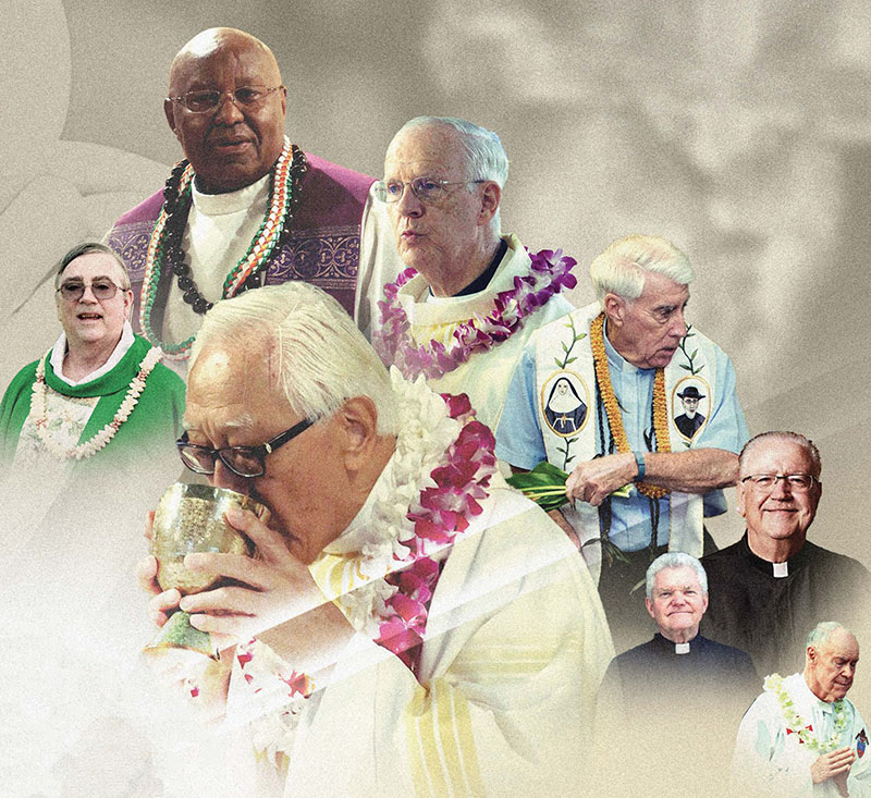 Hawaii’s retired diocesan priests are a very diverse group. Only a handful have island roots. Most have backgrounds elsewhere — with religious orders, the military or other dioceses. Some haven’t been to Hawaii in years, having served and settled somewhere else. Nearly a third live on the Mainland.