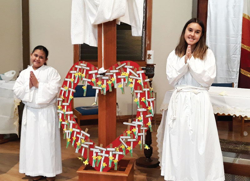 Serenity Lau, right, altar serves at her parish of Our Lady of Mount Carmel in Waikane. (Courtesy photo)