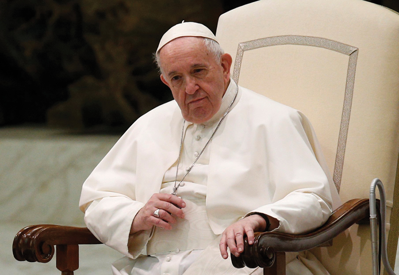 Pope Francis leads his general audience in Paul VI hall at the Vatican Oct. 21. In a new documentary, Pope Francis expressed openness to the idea of laws recognizing civil unions, including for gay couples, to protect their rights. (CNS photo/Paul Haring)