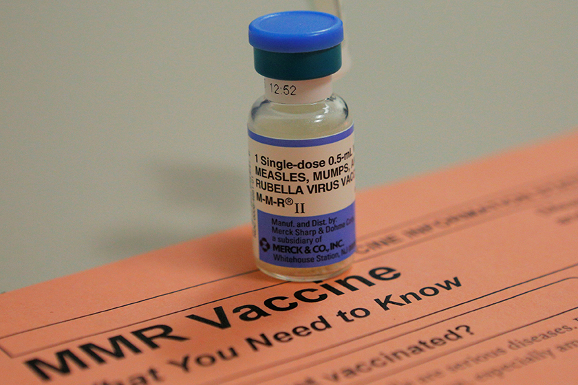 A vial of the vaccine for measles, mumps and rubella and an information sheet is seen at Boston Children’s Hospital Feb. 26, 2015. Currently, the only vaccines readily available in the United States for rubella, chickenpox and Hepatitis A have been manufactured using fetal tissue from procured abortions. (CNS photo/Brian Snyder, Reuters)