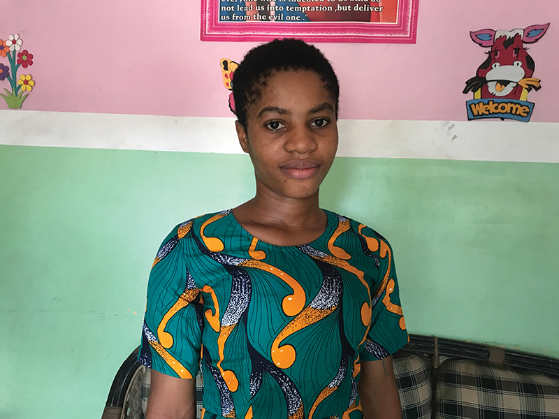 Inimffon Uwamobong, who was rescued by Sister Matilda Iyang when she was 2 years old, poses Oct. 7, 2020, at the Mother Charles Walker Children Home at the Handmaids of the Holy Child Jesus convent in Uyo, Nigeria. Her mother abandoned her and said she was a witch. (CNS photo/Valentine Iwenwanne)