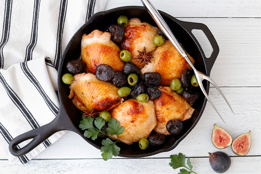 ROASTED CHICKEN THIGHS WITH FIGS AND OLIVES