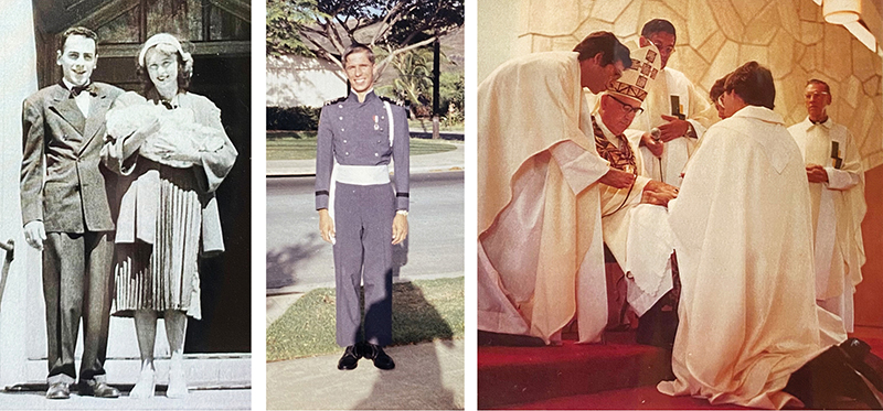 Donald and Alice Secor with their infant son Gary outside of St. Augustine Church in Oakland, California, in 1951 on his baptism day. High Schooler Gary Secor in his Civil Air Patrol uniform. Bishop John Scanlan ordains Father Gary Secor at St. John Vianney Church on Aug. 13, 1977.