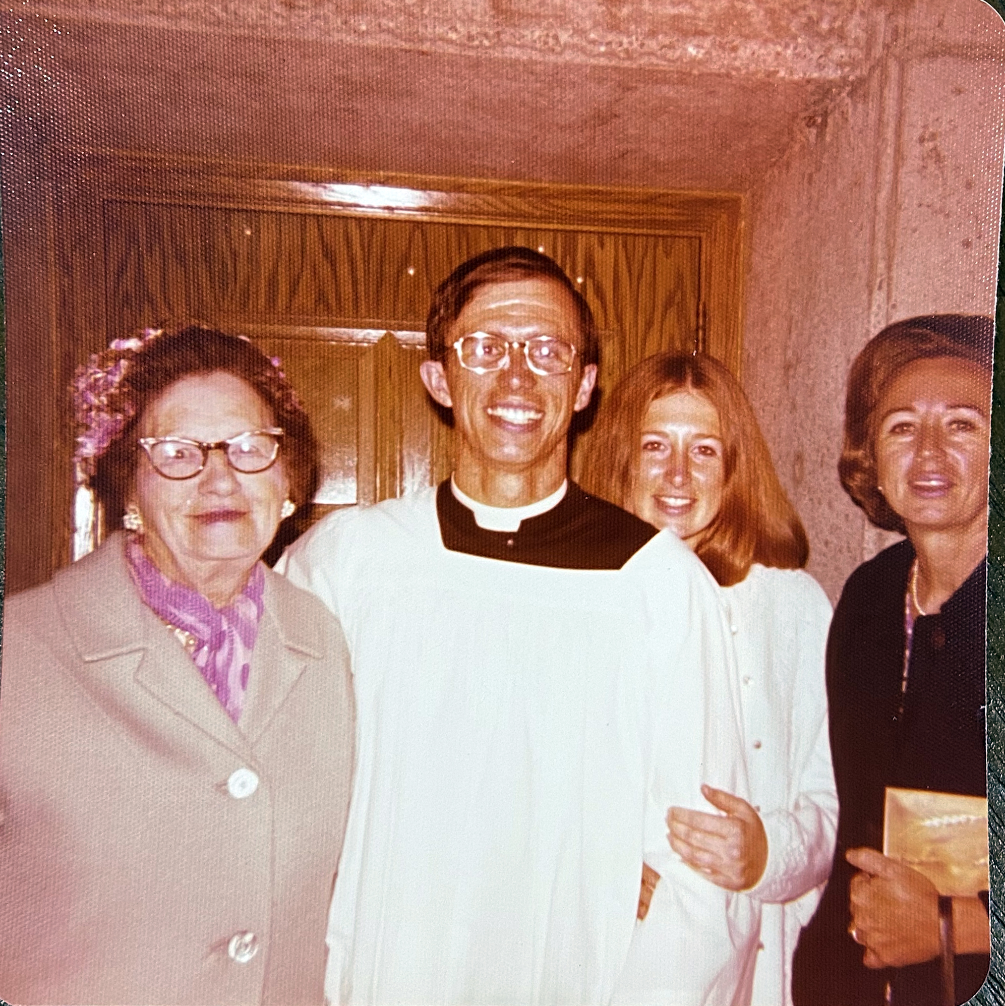 Seminarian Gary Secor, center, with, from left, his paternal grandmother, Bertha Rhoades, sister Cheri, and mother Alice. (Courtesy photo)