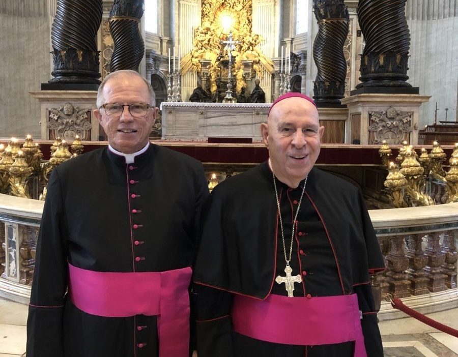 Msgr. Gary Secor, at left, with Bishop Larry Silva in St. Peter’s Basilica in January 2020 during the bishop’s ad limina visit with Pope Francis. (Photo courtesy Msgr. Gary Secor)