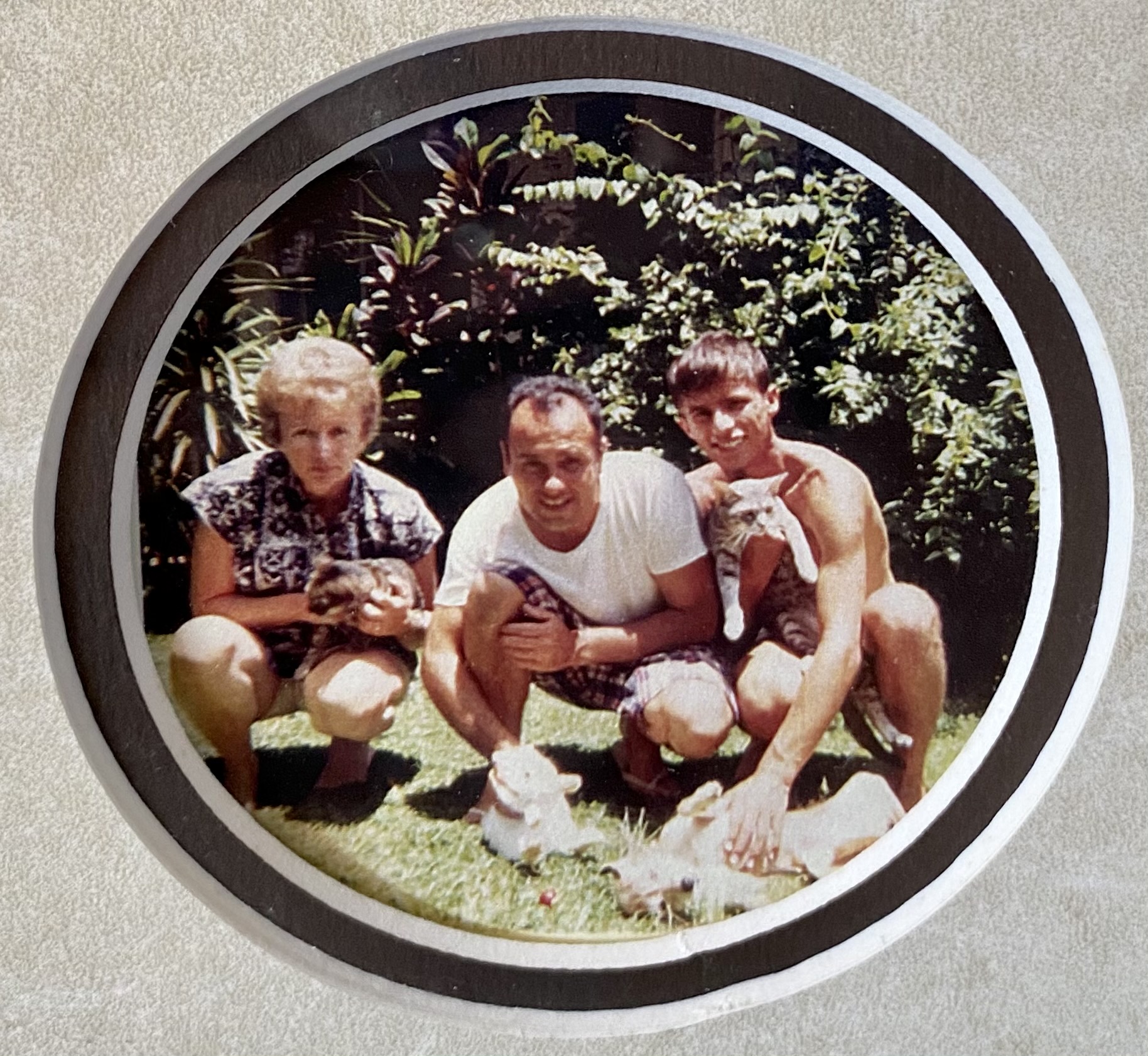High school-aged Gary Secor with his parents, Alice and Donald, and the family dog and cats when the family lived in the Enchanted Lakes neighborhood of Kailua. (Courtesy photo)