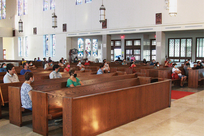 Social distancing in the Co-Cathedral of St. Theresa May 31, the weekend last year worshipers returned to church. (Photo courtesy of Dann Ebina)