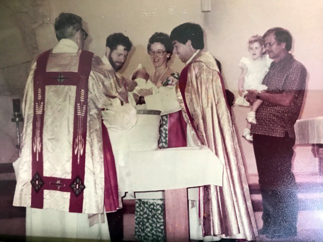 Easter morning was so beautiful. The sun was shining. The church was decorated with lilies, and the priest marched into the church in golden vestments. A big bowl of holy water that had been blessed the night before for the newly baptized was on a table in the sanctuary. Our hearts were filled with joy that day as we witnessed our son being baptized.