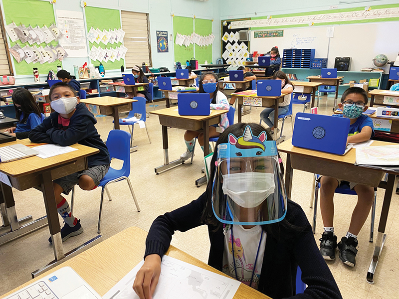 One of the first questions prospective families ask when touring St. Joseph School in Waipahu is whether the school is doing in-person or online learning. The school has been face-to-face since the start of the school year with an option to be online, although only 20 students are currently choosing the latter.