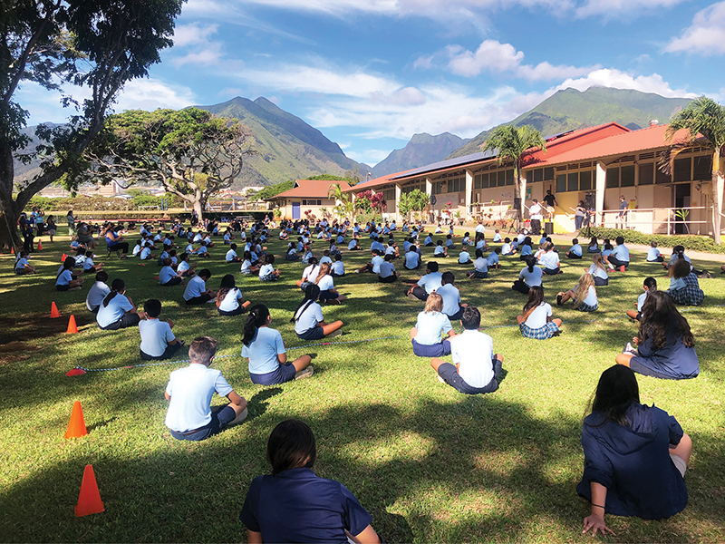 St. Anthony School in Wailuku, Maui, holding a socially distanced outdoor prayer service. (Courtesy photo)