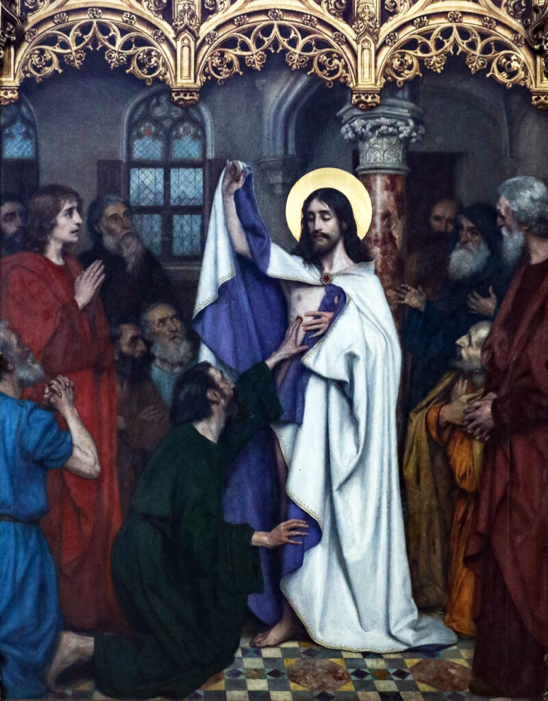 Sometimes awesome things like this hit us like bolts of lightning. But in this case, Jesus comes more gently, more subtly — but he does come to feed us and nourish us for our mission. We pray that we will allow him to enter our locked hearts every Sunday of the year and even more often, so that he can amaze us with his love and the gift of peace that only he can give. And we pray that all of us will listen to the confidence Jesus places in us by sending us out to bring his loving message of mercy to all.