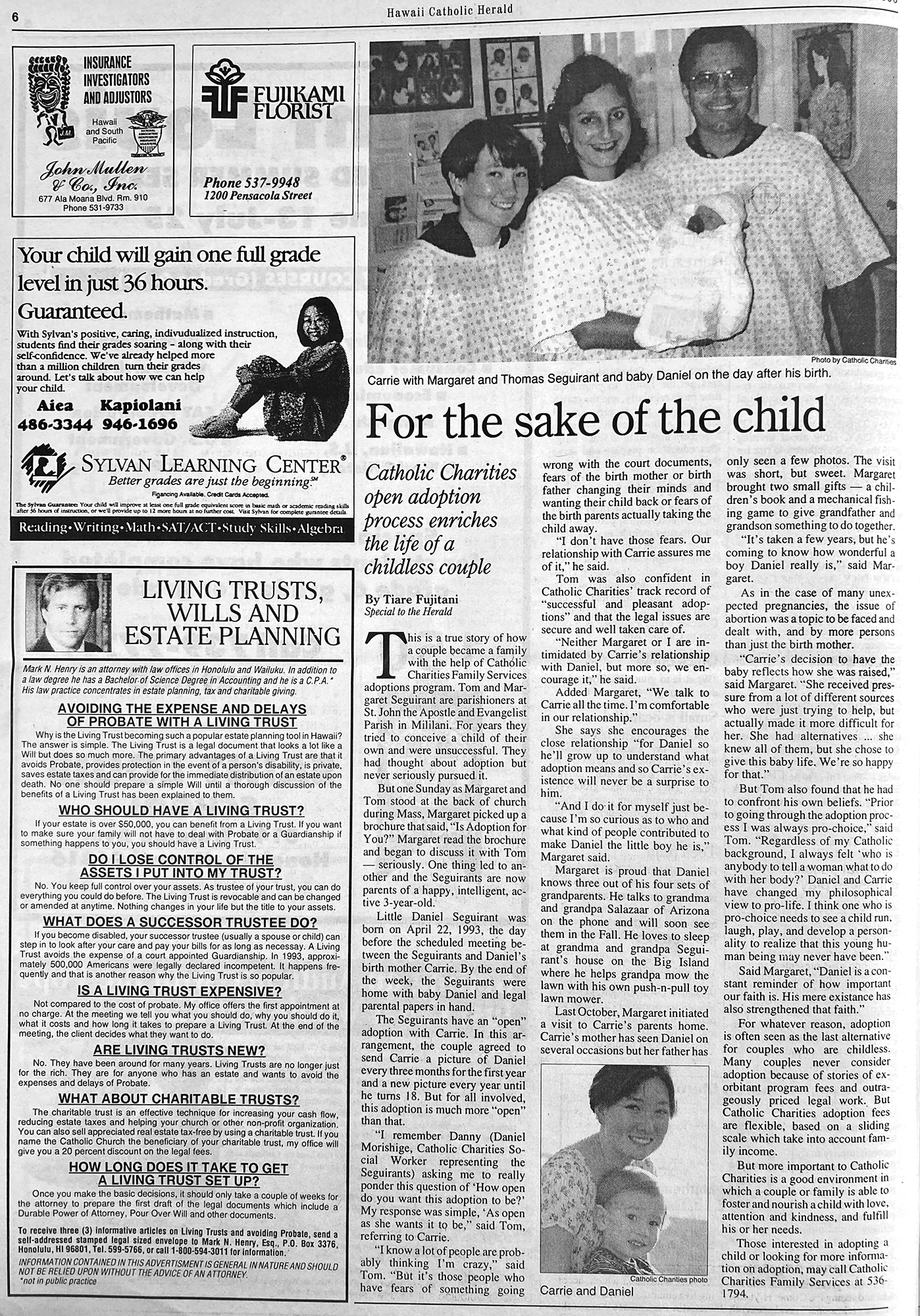 Tom and Mary Seigurant are parishioners at St. John the Apostle and Evangelist Parish in Mililani. For years they tried to conceive a child of their own and were unsuccessful. They had thought about adoption but never seriously pursued it.
