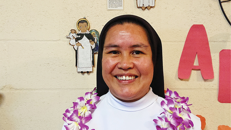 Sister M. Emilie Basitas is a Dominican Sister of the Most Holy Rosary of the Philippines. From Carmen, Davao del Norte, Davao Region, she came to Hawaii in 2005 and was assigned at St. John the Baptist School, Kalihi, and St. Elizabeth School, Aiea. She is the oldest of four and has a younger sister who is a Franciscan Sister of St. Elizabeth of Hungary.