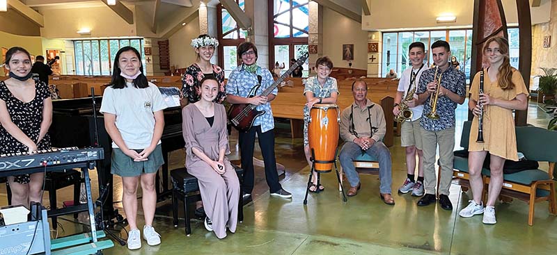 On Sunday afternoons at St. John Vianney Church in Kailua, you’ll hear the sound of contemporary Christian music coming from a room where middle school and high school parishioners are playing piano, bass, clarinet, electric guitar, synthesizer and percussion instruments. Several vocalists sing along.
