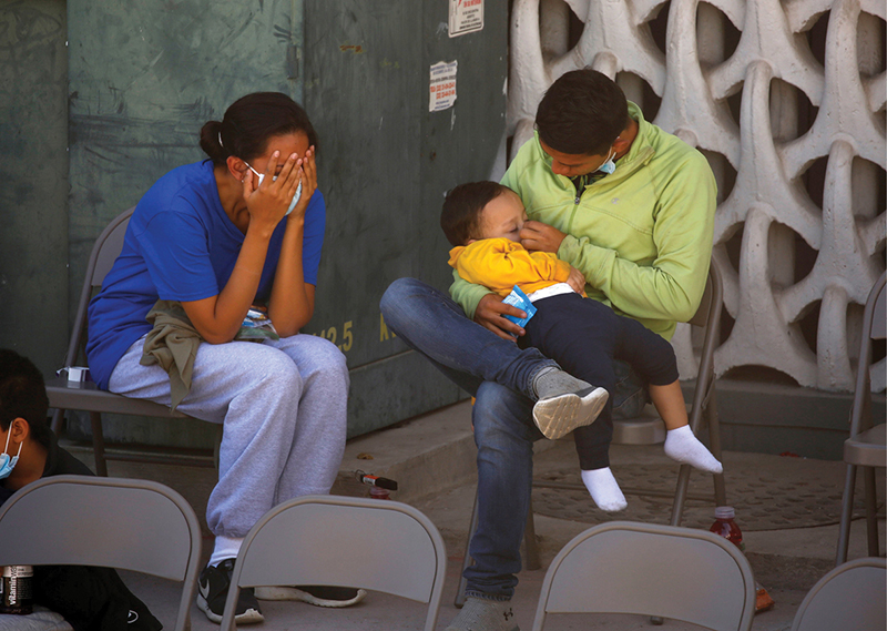 A deported Central American mother cries with her family outside the National Institute of Migration building in Ciudad Juarez, Mexico, April 5, 2021. (CNS photo/Jose Luis Gonzalez, Reuters)