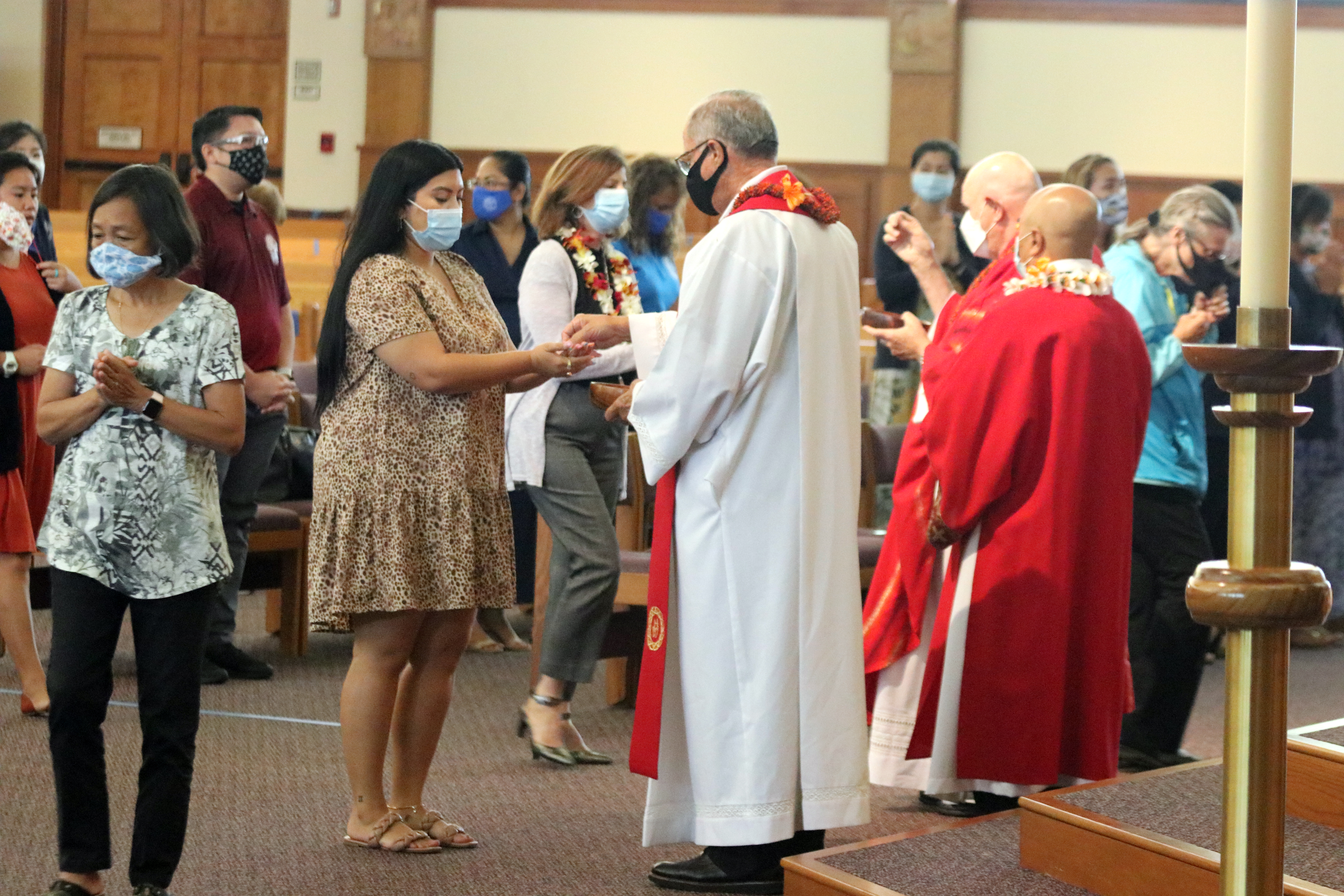 - Holy Communion at the Aug. 4 Mass of the Holy Spirit at St. Ann Church in Kaneohe (HCH Photo: Anna Weaver)