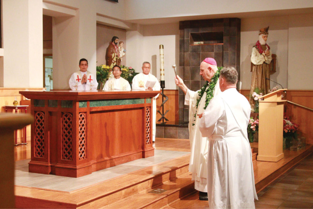 Bishop Silva blessed and dedicates a new altar at St. Joseph Church in Waipahu in Sept. 2019. (HCH File photo)