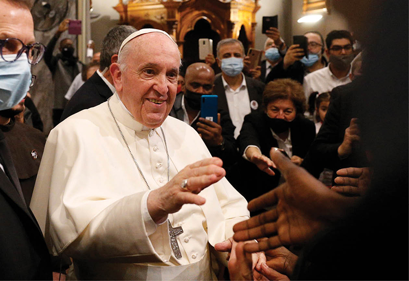 Pope Francis greets people as he leaves an ecumenical prayer with migrants in the Church of the Holy Cross in Nicosia, Cyprus, Dec. 3. (CNS photo/Paul Haring)