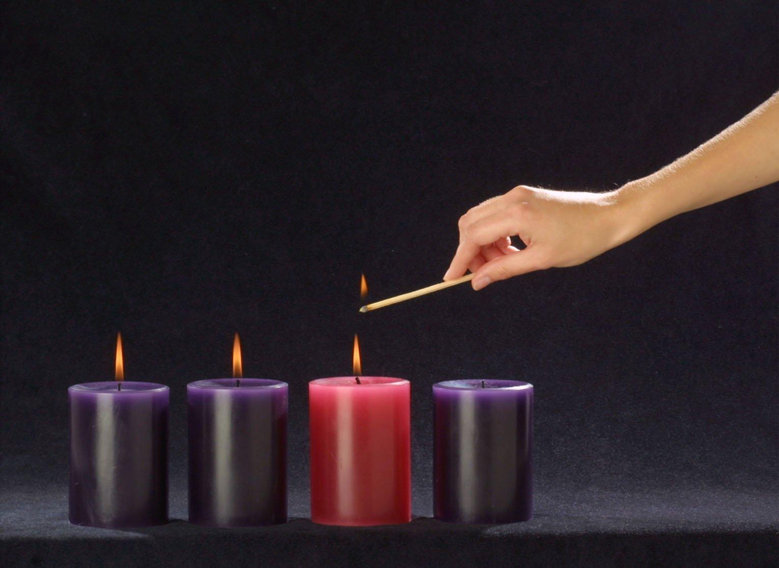 The Advent season begins with the lighting of the Advent wreath as the central symbolic rite of spiritual preparation for Christmas. Purple is the color of penitence and humility. The rose colored candle, lit the Third Week of Advent, represents a hopeful look toward Christ’s coming. (CNS photo by Jon L. Hendricks)