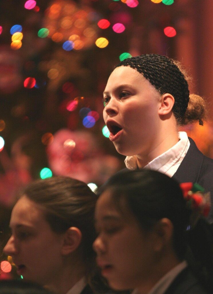Jessica Creed, a junior at Sacred Heart Academy in Hempstead, N.Y., sings Christmas hymns with other members of her school’s choir before Mass Dec. 21, 2005. “O Holy Night” isn’t just a carol, but a hymn of worship. (CNS photo by Gregory A. Shemitz, Long Island Catholic)