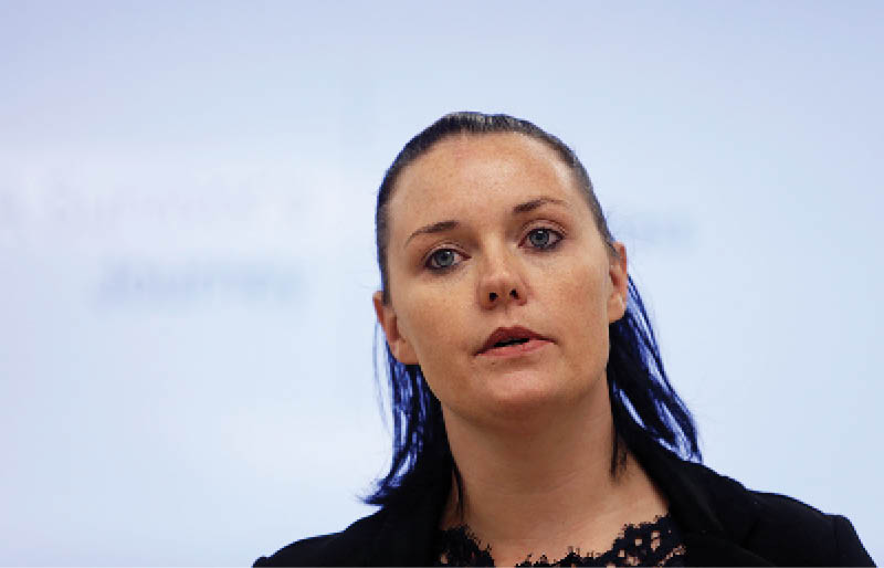Lindsey Hass, a human trafficking survivor, speaks to officers from the Berkeley County Sheriff’s Office during a training session in Moncks Corner, S.C., in this Jan. 23, 2020, file photo. (CNS photo/Randall Hill, Reuters)