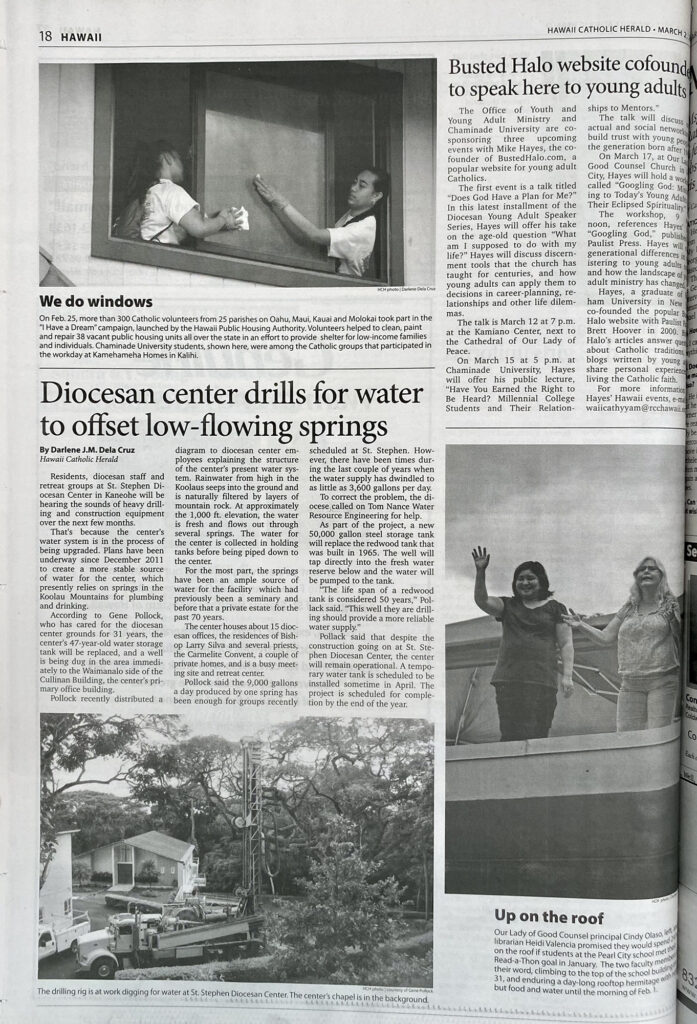 Residents, diocesan staff and retreat groups at St. Stephen Diocesan Center in Kaneohe will be hearing the sounds of heavy drilling and construction equipment over the next few months.
