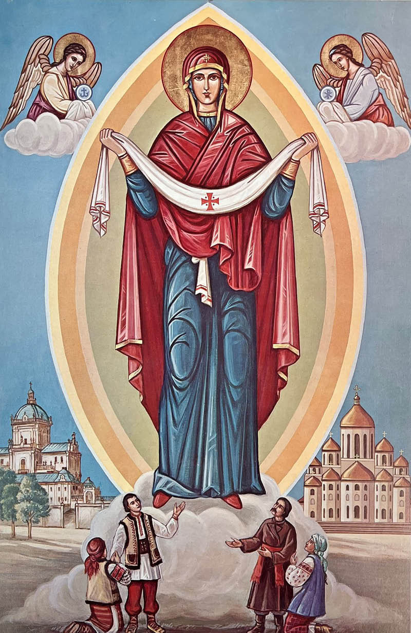 This sacred image is known in Ukraine and many other East European nations as the “Pokrova,” or the Intercession of the Theotokos, “mother of God” in Greek, a title for Mary used in both Eastern Orthodox and Byzantine Catholic churches.
