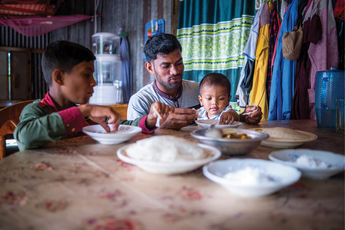 Noorobi feeds his family in Monpura, Bangladesh. (CRS photo)