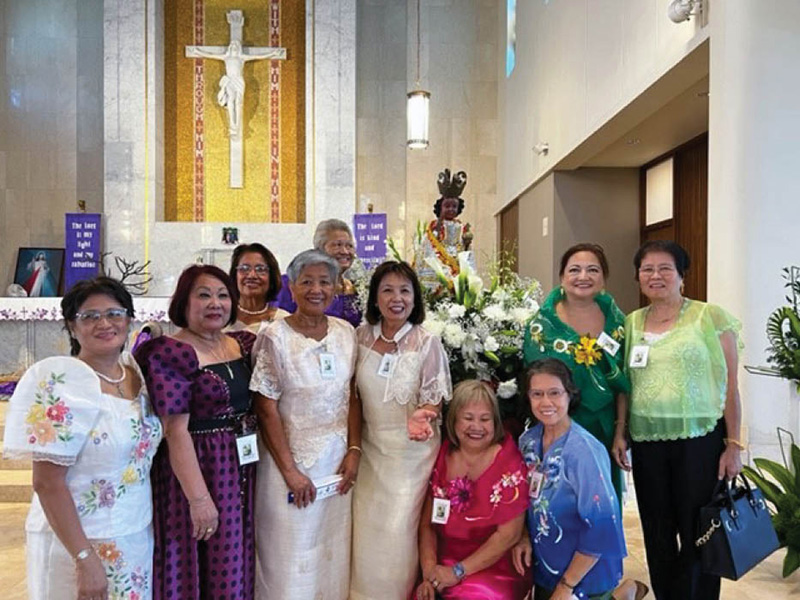 Members of the St. Jude Filipino Catholic Club in Kapolei pose with the statue of Santo Nino at the March 19 Mass celebrating 500 Years of Christianity in the Philippines at the Co-Cathedral of St. Theresa. (Photo courtesy of Tere Hunt)