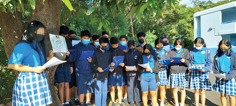 Eighth graders at St. Joseph School in Waipahu created posters of the Stations of the Cross for Lent. The artwork was hung around the church and school for all to pray and reflect on. The school prayed the Stations weekly. Some classes attended in person in church while others watched it live online. (Photo courtesy of Keala Kia)