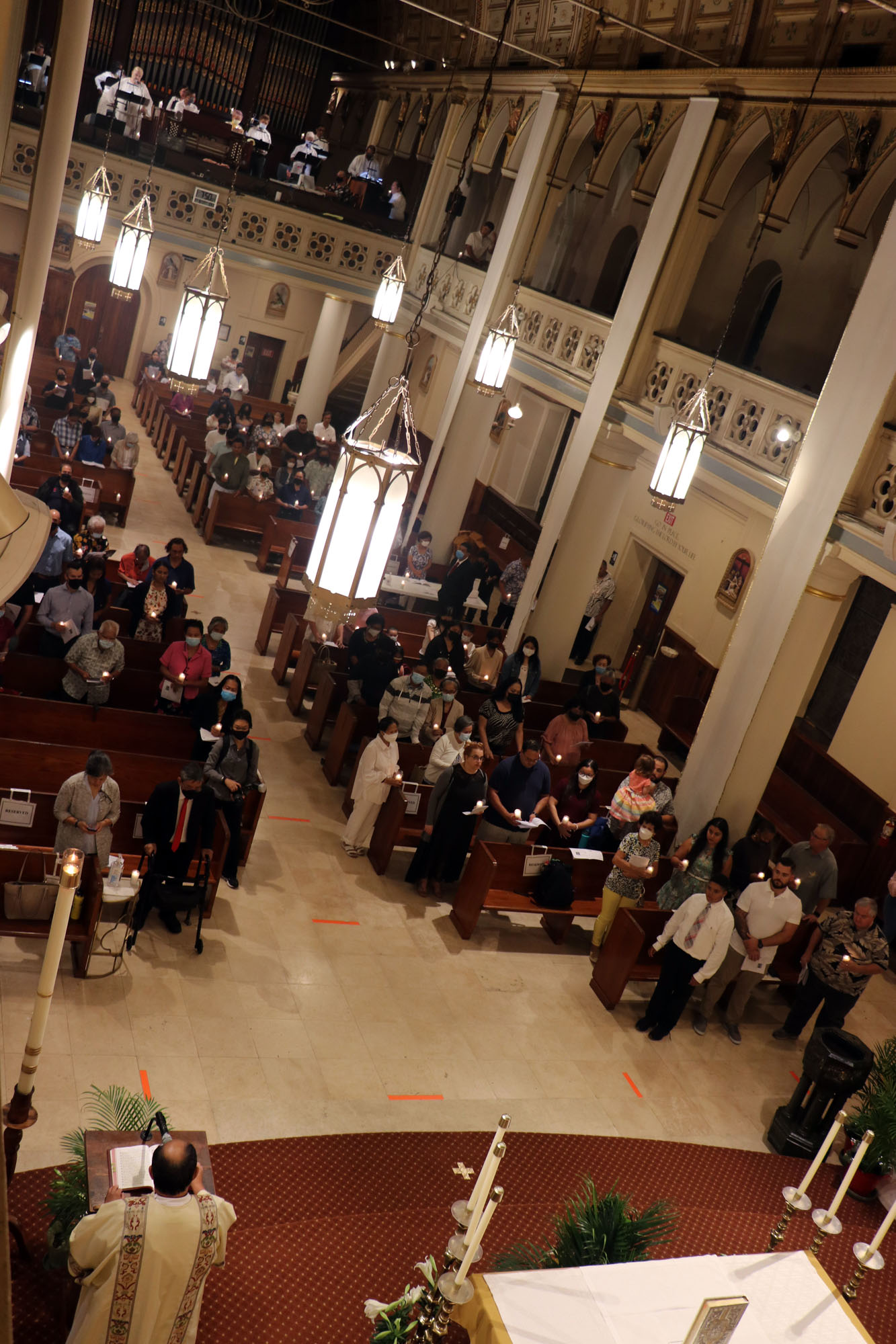 Lights on in the cathedral basilica at the start of the Easter Vigil on April 16. (HCH Photo: Anna Weaver)