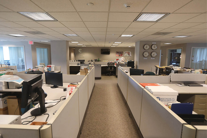 An empty Catholic News Service newsroom is pictured at the headquarters of the U.S. Conference of Catholic Bishops in Washington May 4, 2022. The USCCB announced to staff May 4 a dramatic reorganization of its communications department, including the closure of the Washington and New York offices of CNS. (CNS photo/Bob Roller)