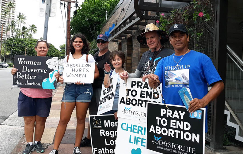 We also encourage you to offer one hour in front of Planned Parenthood praying for all mothers, fathers and abortion workers. Pray for their conversion of heart and especially for the innocent unborn. Contact Anne Shigeta Koch, site director, (808) 268-7143, or Agnes Tauyan, (808) 348-4481, of the 40 Days for Life Easter campaign.