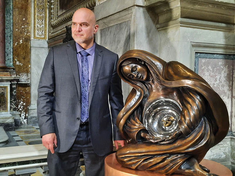Schmalz spoke with Catholic News Service and other reporters in Rome May 27 to present his latest sculpture: the “Life Monument,” which is permanently installed at the Church of San Marcello al Corso in the center of the city.