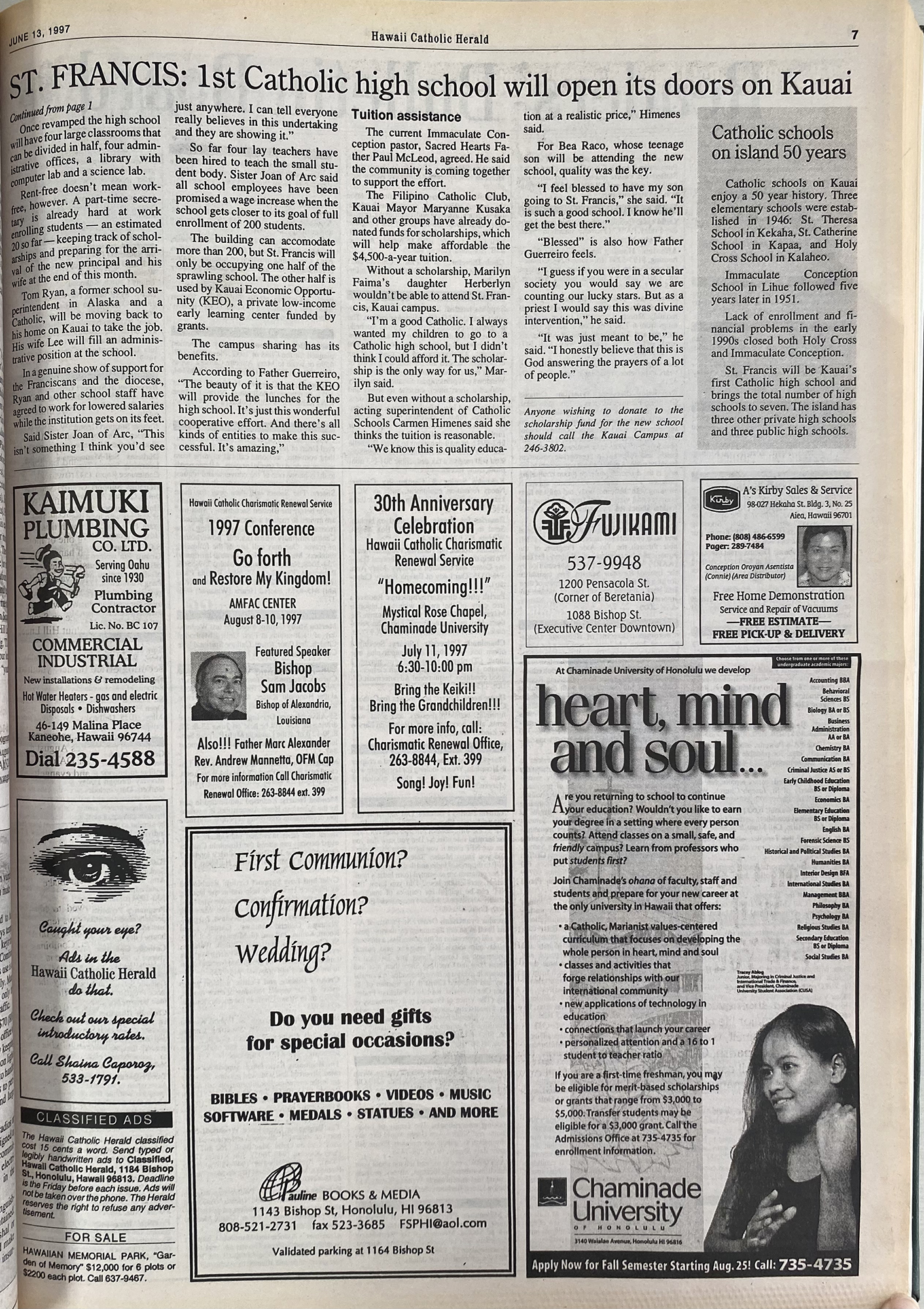 Editor’s Note: St. Francis’ Kauai campus closed in 2001.