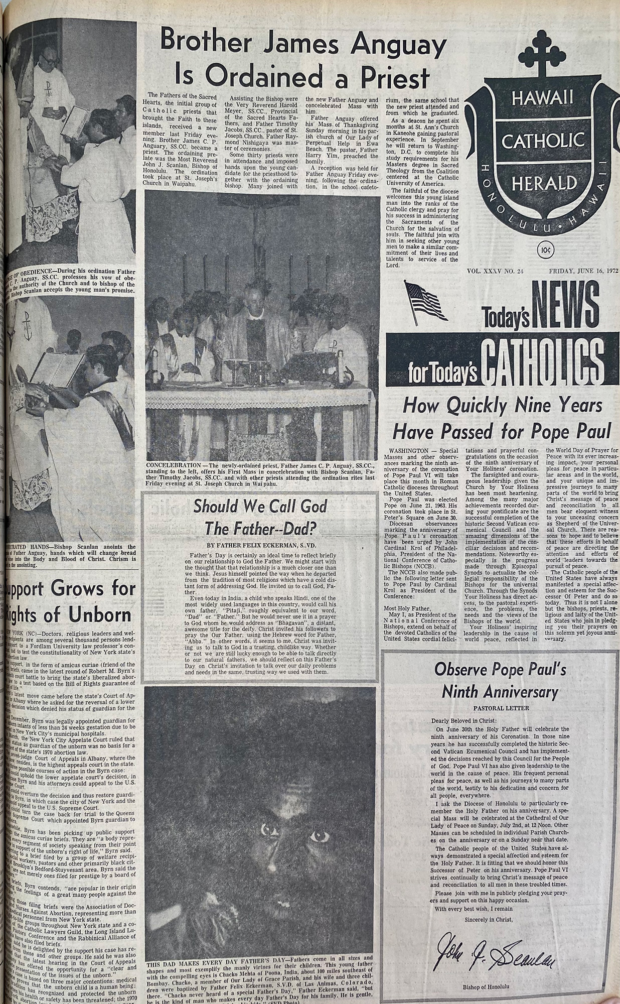 Editor’s Note: Father Anguay died in 2014 after serving in Hawaii, Chicago and the Cook Islands.