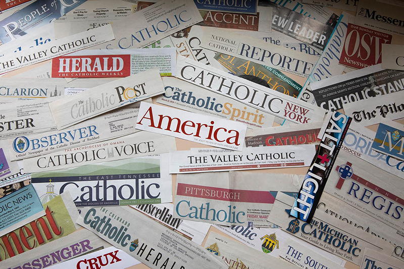 The nameplates of Catholic newspapers, most if not all of which are users of Catholic News Service. (CNS photo/Tyler Orsburn)