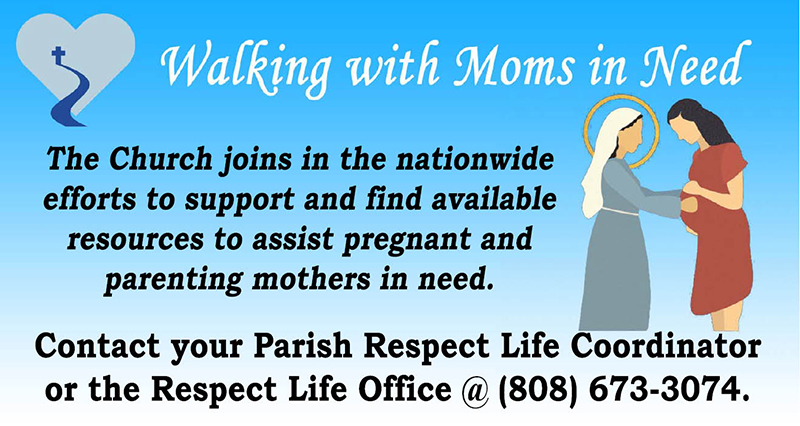 For further information, contact your parish respect life coordinator or team member or the Respect Life Office 808-673-3074 for further information. Together we can truly make a difference in the world.