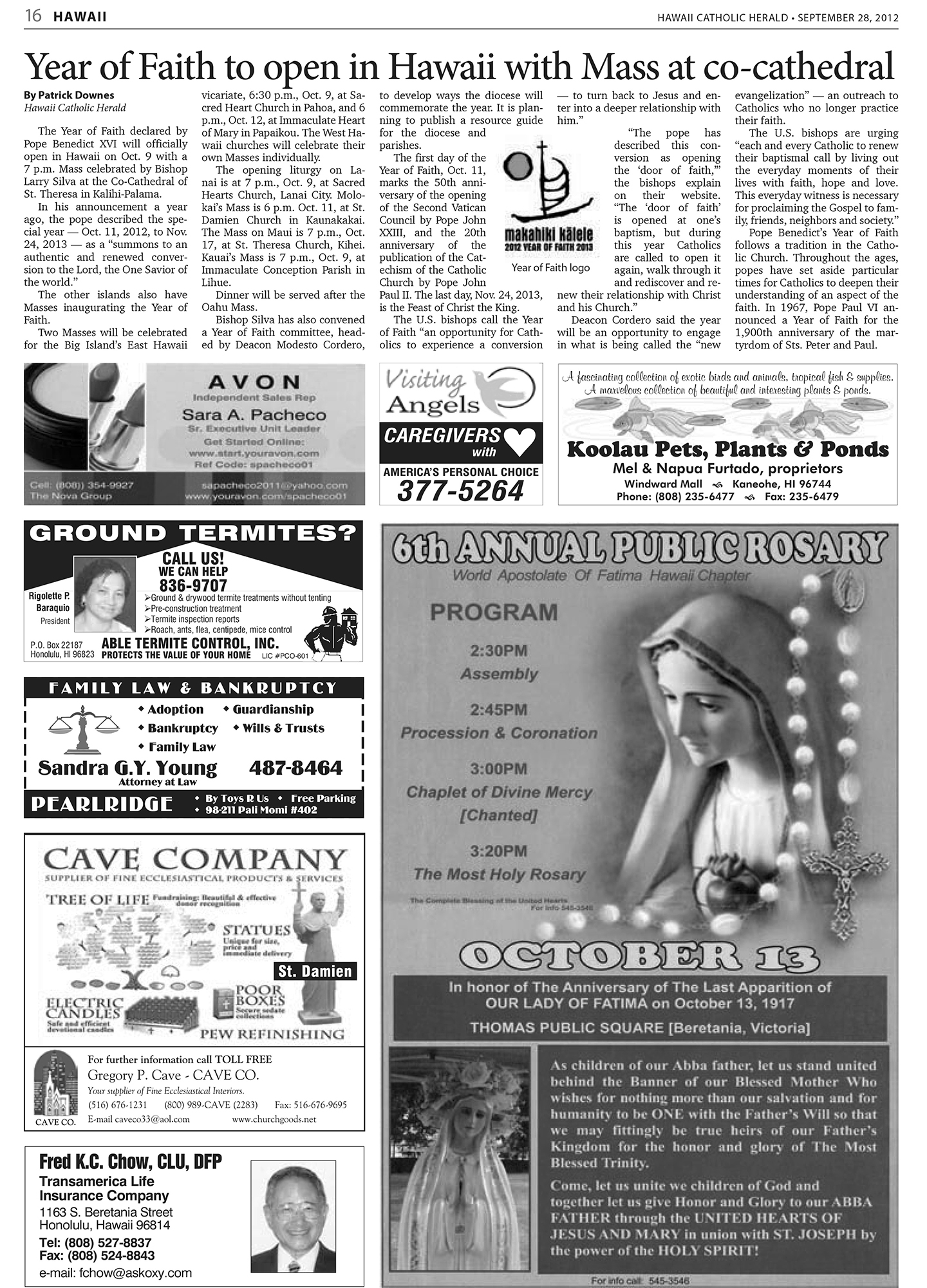 The Year of Faith declared by Pope Benedict XVI will officially open in Hawaii on Oct. 9 with a 7 p.m. Mass celebrated by Bishop Larry Silva at the Co-Cathedral of St. Theresa in Kalihi-Palama.