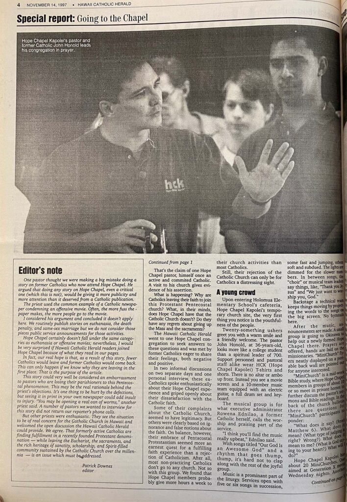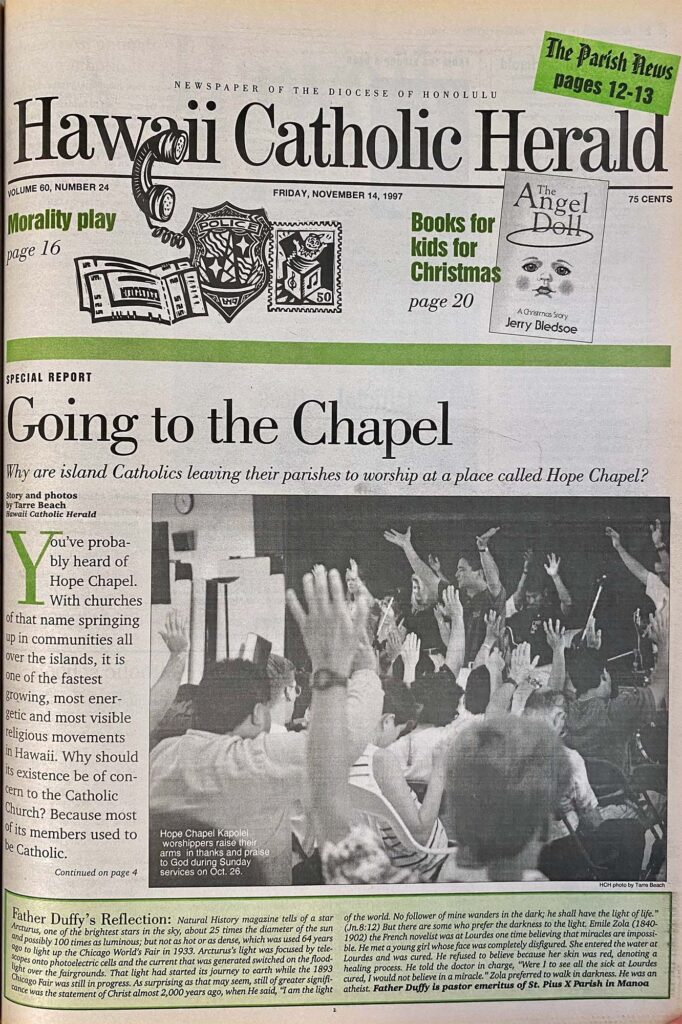 You’ve probably heard of Hope Chapel. With churches of that name springing up in communities all over the islands, it is one of the fastest growing, most energetic and most visible religious movements in Hawaii. Why should its existence be of concern to the Catholic Church? Because most of its members used to be Catholic.