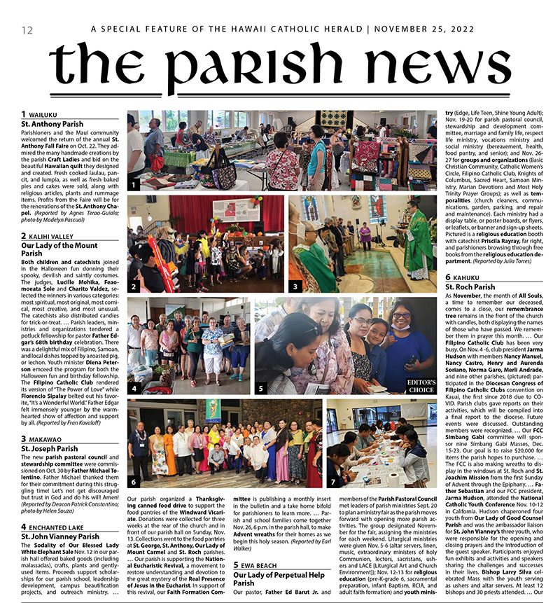 Hawaii Catholic Herald Parish News: Nov. 25, 2022 11/23/2022 by Hawaii Catholic Herald Click here to view pdf files of the Parish News Pages.