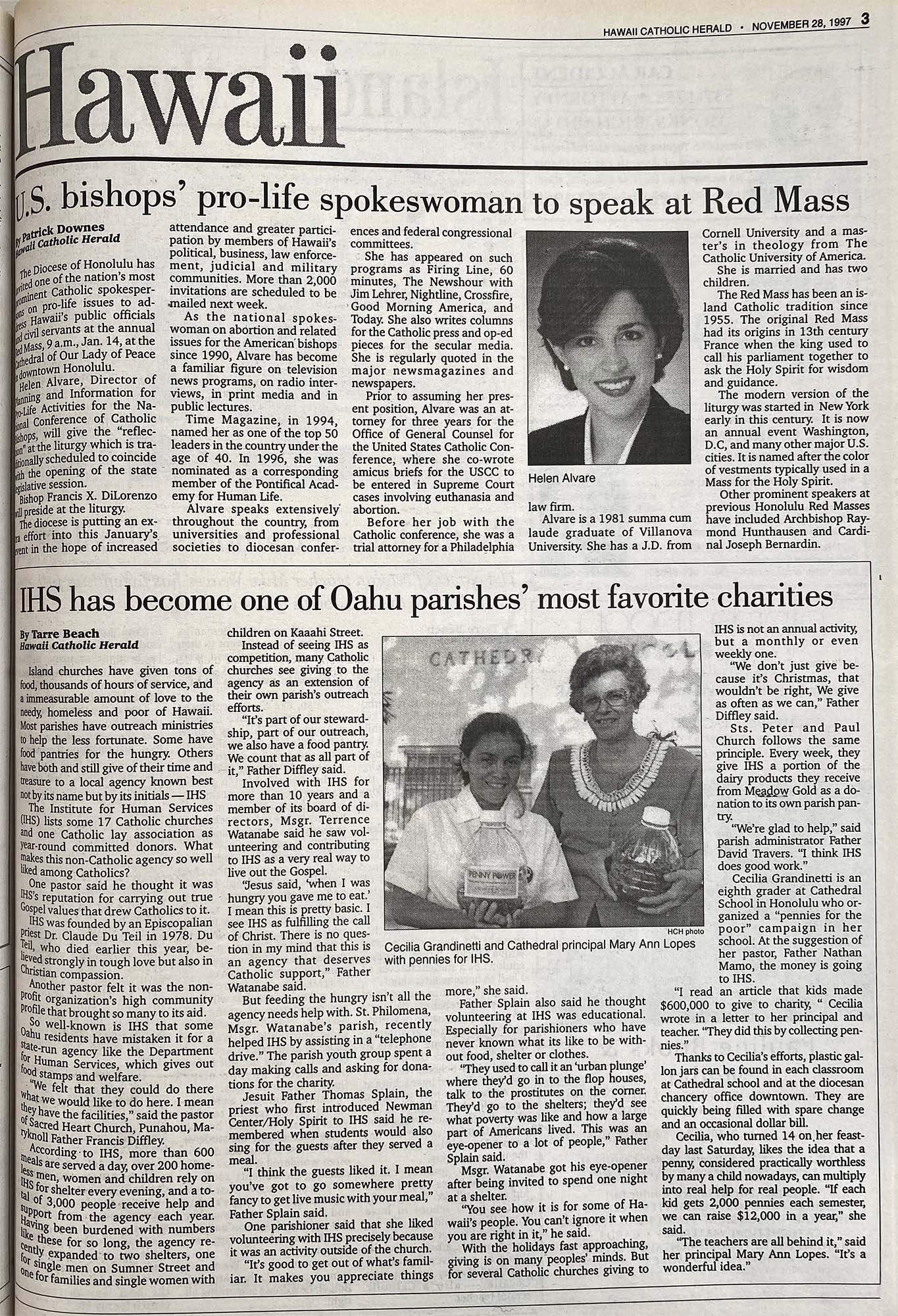 The Diocese of Honolulu has invited one of the nation’s most prominent Catholic spokespersons on pro-life issues to address Hawaii’s public officials and civil servants at the annual Red Mass, 9 a.m., Jan. 14, at the Cathedral of Our Lady of Peace in downtown Honolulu.